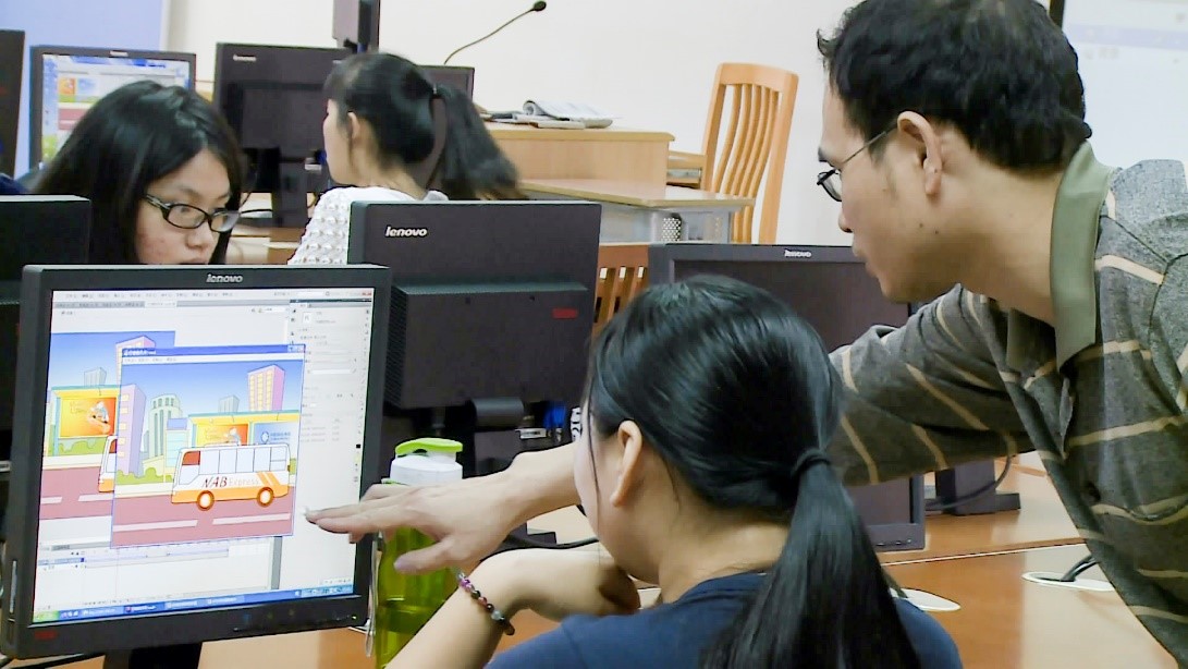 19日中午,黄伟波老师在大学城南校区实验楼C207进行Flash教学观摩课。黄老师精心备课,在教学中的引入翻转教学理念,同学们积极参与教学,师生互动明显。