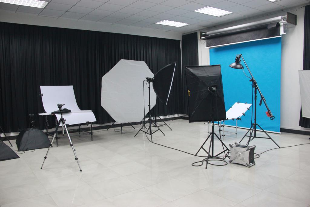 3.灯光摄影实验室。该室位于南校区实验楼E504,配置了多套背景墙、静物台及摄影影视灯具,可供多组同时共享及使用。