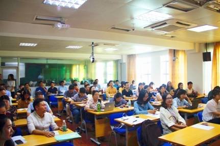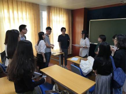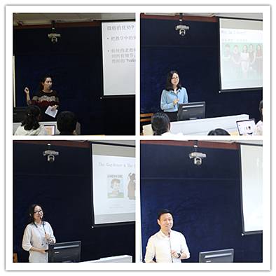 接下来,四位导师代表以浅谈课堂教学的授课技巧为主题依次作了简短的分享。语言组导师石静通过对数年前新入职教师的微格教学视频分析,细致认真地剖析了每个教学的细节以及场景,她认为“Learning by doing”一直是她推崇的教学哲学。李峻岭对自己分享的新教学、新思路作了整合,启发在座作为从教者的学员主动思考、联想并使用不同的教学举措,同时,他讲述了教师从自身品质到教学能力的内外互为因果效应,并总结了教师形象塑造的关键要素;郝佳别出心裁地向所有的参训老师推荐了与教育相关的三本书:分别是《园丁与木匠》、《爆裂》和《知识的边界》。三本书依次阐述教育个体的心理发展、在动荡社会中的应对模式与信息社会信息过载的应对策略。她从教育者的视角巧妙运用书中概念解释从微观到宏观层面的“言传身教”,并鼓励教师多阅读、多学习。吕琳琼则从训练目的、教学“秘籍”和训练安排三个方面,结合自身经历,大力倡导体验教学并与学生共同成长。最后,四位导师代表分别与各自的组员现场交流,气氛热烈,为接下来的训练打下基础。
